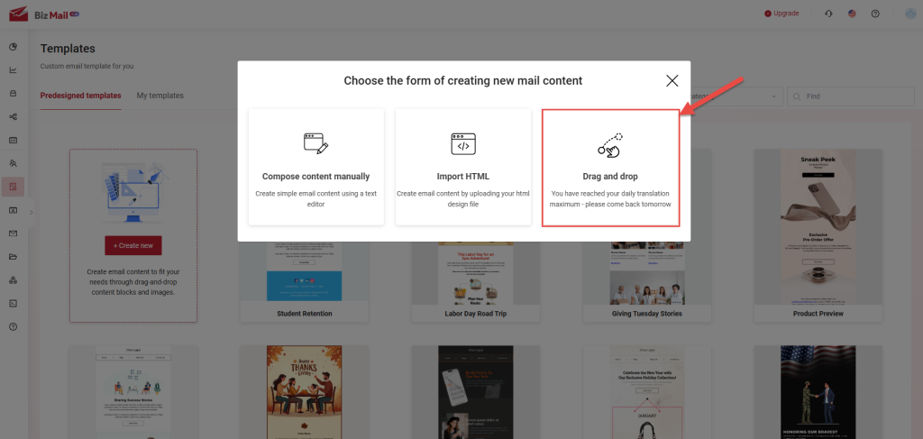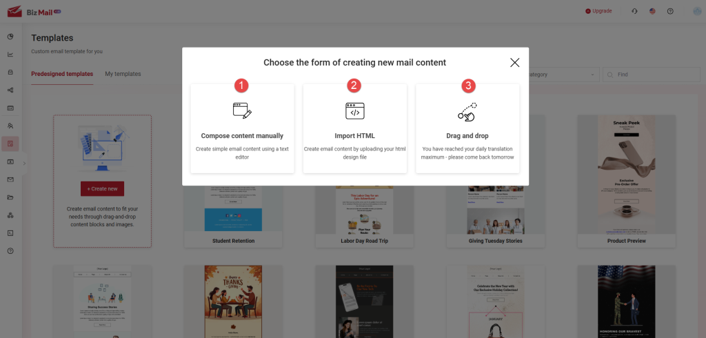 Step 2: Select a Method to Create a New Email Template