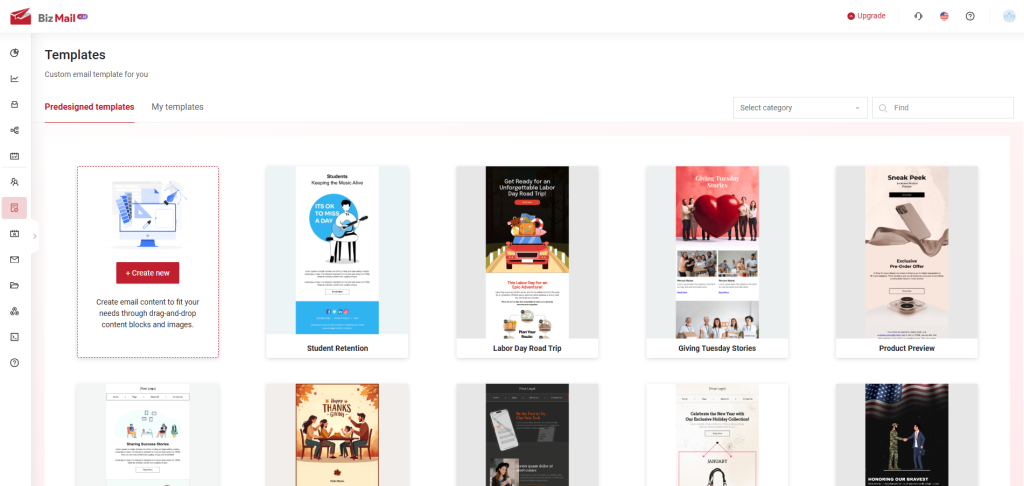 - AIBizmail provides ready-to-use email templates that users can modify. If no suitable template is found, click "Create New" to start from scratch.