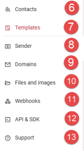 In the Left Menu Bar, users will focus on several modules to start creating Email Marketing campaigns: